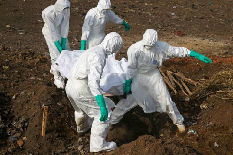 ![A burial team wearing protective clothes prepares an Ebola virus victim for burial, in Port Loko, Sierra Leone, September 27, 2014 [Christopher Black/Reuters]](https://www.aljazeera.com/wp-content/uploads/2016/11/266b9b1107714d09810adf895c1ebd18_18.jpeg?quality=80)