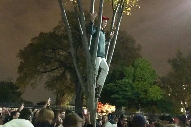 At 2.30am on Wednesday, a young man in a red Make America Great Again cap climbed a tree by the White House gate and shouted: “Donald Trump is the next president of our country!”
