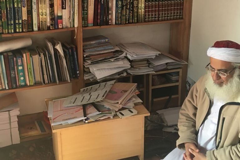 As the interview comes to a close, the cleric collects a few copies of his self-published books from a small, rectangular office to hand out. One of them is entitled “Is Pakistan’s Constitution Islamic?”