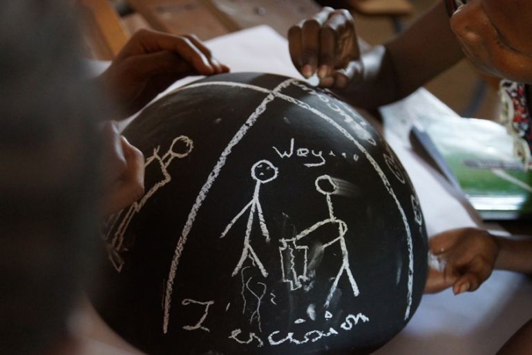 In one class, students are huddled around a black clay pot turned upside down. On it, they draw their stories of FGM and child marriages.