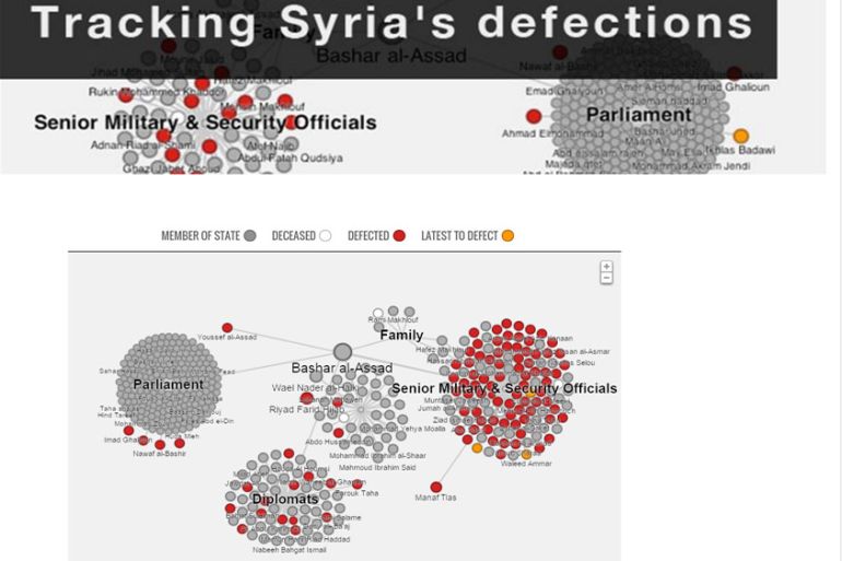 Our researchers worked with organisations around the world to present the most accurate information about the people who had defected from the regime of Syrian President Bashar al-Assad at the time.
