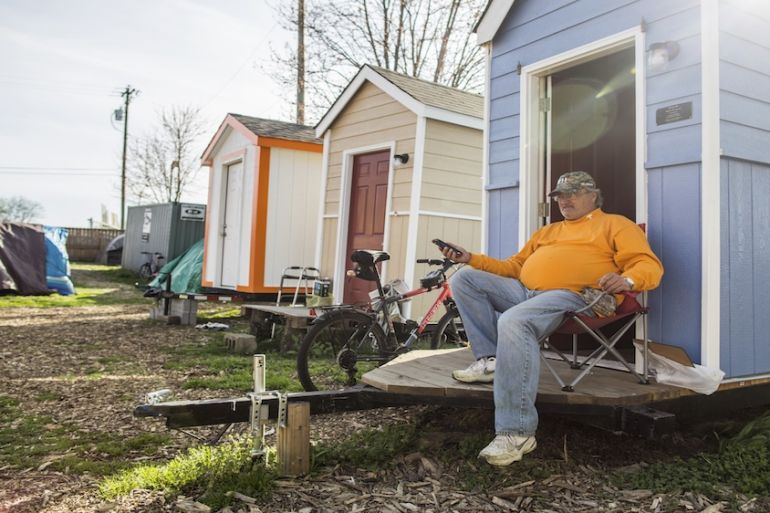![Peter Regan, who has been a resident of the camp for about a year, describes the tiny houses as a 'stair step' to his own permanent residence [Joe Buglewicz/Global News Insight]](https://www.aljazeera.com/wp-content/uploads/2016/04/a4d1f7009b174cb9ad29afd8afa5d42e_18.jpeg?quality=80)