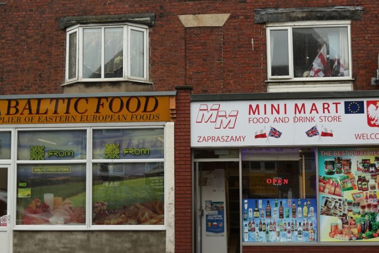 On a 350-metre stretch of road one can find a Baltic food supplier with an EU flag on its shopfront, a Polish mini-mart beneath a flat festooned with St George’s cross flags and an information centre offering currency transfers and benefits advice to new arrivals.