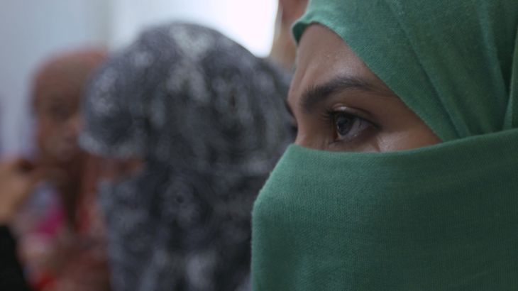 Other women have started to do the same, and soon the marquee is filled with hundreds of women. “Please don’t film us,” they request, pointing at their uncovered heads.