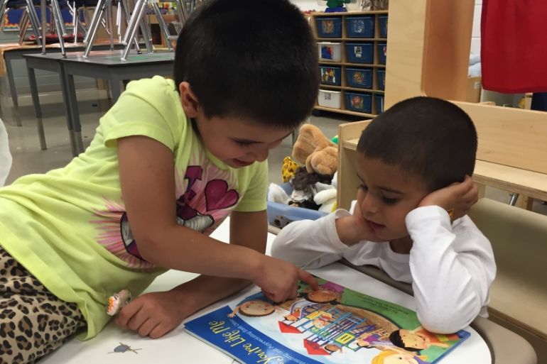 “I like my teacher and toys and I have fun with the other kids,” she says in Arabic.