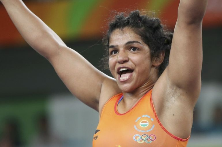 ![Sakshi Malik draped in the Indian flag after winning the bronze medal at the Rio Olympics in 2016 [Ruben Sprich/Reuters]](https://www.aljazeera.com/wp-content/uploads/2016/09/6176f3f8e74649bbb1a141dc6999a719_18.jpeg?quality=80)