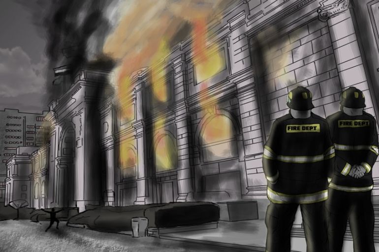 An hour later, I saw several men break into the main gate of the museum and set the northern section of the building on fire. I ran towards three fire brigade cars parked nearby and drew their attention to the fire that was threatening to consume the museum, even though it must have been obvious to them anyway. They looked at me straight faced and didn’t respond.