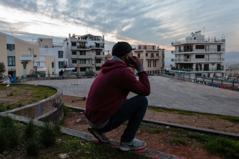 Athens, Greece – Mahmoud looks out over the chaotic mess of rooftops and aerials and towards the neglected park he now calls home. He’s wearing a red hoodie, blue jeans and a black cap. Everything suggests he is a typical 20-year-old, apart perhaps from the jagged scar on his brow.