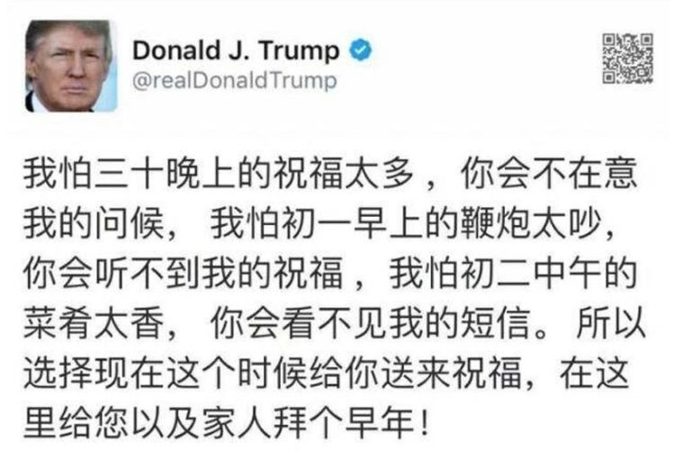 Fake Trump tweets are filling up Chinese social media without censorship. With a 15-day long nationwide festival about to start, why not have some fun?
