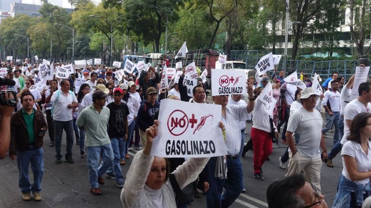 The first protest against the gasolinazo was organised over social media and took place on January 1, the day the higher prices went into effect. The demonstration was small by Mexico City standards, but the protesters were loud and angry. After arriving for the march they decided to shut down a nearby petrol station.