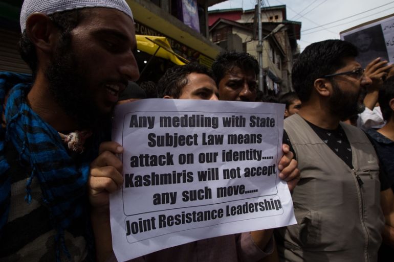 Hindu nationalists have campaigned against Article 35A enshrined in India’s constitution that bars Indians from buying land in the disputed region.