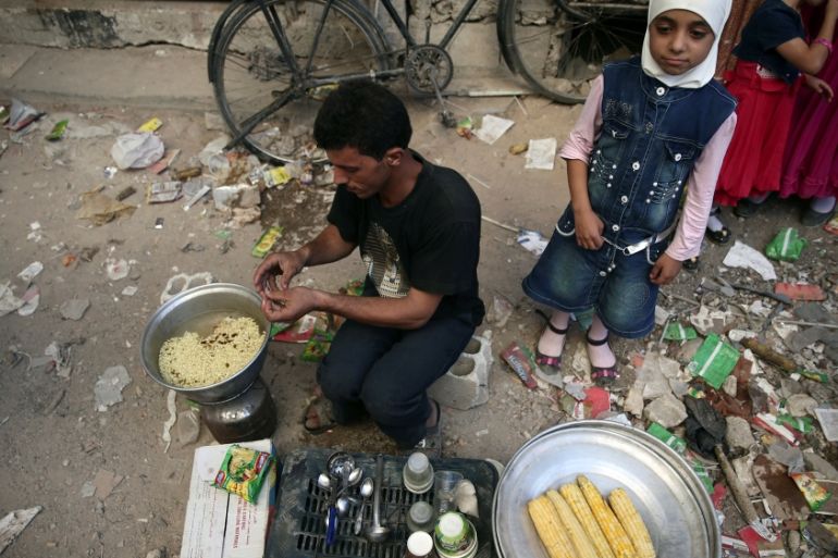 Between Hajar al-Aswad and Yalda runs A’roubeh Street, where ISIL and rebel-controlled neighbourhoods are separated at opposite ends by just a few hundred metres. Although many of these fronts have been quiet for months, there are barriers, checkpoints and loaded rifles everywhere.