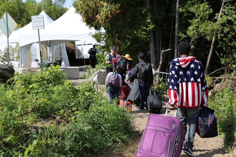 ![Asylum seekers are arrested and processed by police officers on the Canadian side of the Roxham Road border crossing [Blake Sifton/Global News Insight]](https://www.aljazeera.com/wp-content/uploads/2017/09/e86718ddc08c4780bb19645035364d28_18.jpeg?quality=80)
