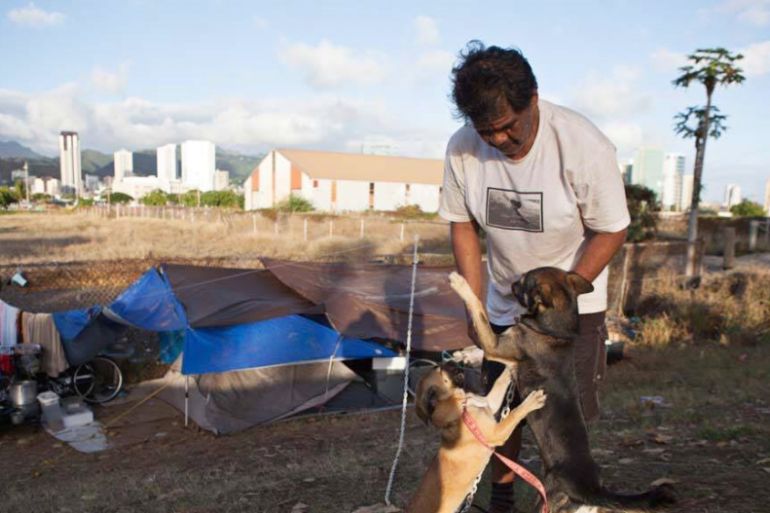 ![Twinkle Borge, the leader of Pu'uhonua camp, organises the community work. Every resident in the community must volunteer eight hours a week for the upkeep of the settlement [Emre Caylak/Global News Insight]](https://www.aljazeera.com/wp-content/uploads/2017/09/712ef673a87643d998ad70392ddfcb64_18.jpeg?quality=80)