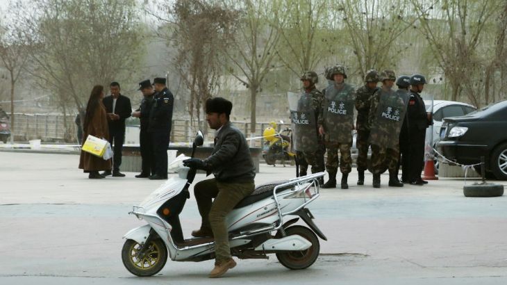 ![Uighur security personnel patrol near the Id Gah Mosque in Kashgar in Xinjiang in this 2017 photo [Ng Han Guan/AP]](https://www.aljazeera.com/wp-content/uploads/2018/09/b74b2d7a4ffe4e5e93b4b4d968abcc47_18.jpeg?quality=80)