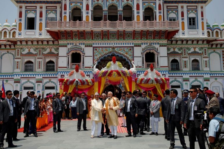 ![Modi offered prayers at major Hindu pilgrimage sites, including Janaki, Muktinath and Pashupatinath Temples [Navesh Chitrakar/Reuters]](https://www.aljazeera.com/wp-content/uploads/2018/05/123c622c6c4e45a2aaaaad7a72136b5f_18.jpeg?quality=80)