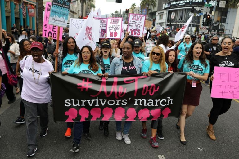 ![People participate in a protest march for survivors of sexual assault and their supporters in Los Angeles, California in November 2017 [File: Lucy Nicholson/Reuters]](https://www.aljazeera.com/wp-content/uploads/2018/06/b63df21976064c4fa15ae2686ecb40a6_18.jpeg?quality=80)