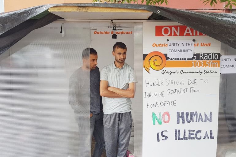 On Wednesday, along with 23-year-old Afghan Mirwais Ahmadzai, he started a hunger strike on a Glasgow street to protest the treatment and eviction of asylum seekers by the UK Home Office and its private contractor, Serco.