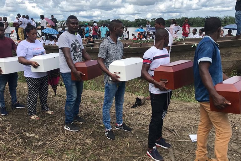 Bellavista, Colombia – The small white coffin could be held with two hands. Sitting atop a long, wooden canoe, the box floated down the murky waters of the Atrato river surrounded by dozens of other coffins – white for children, brown for adults.