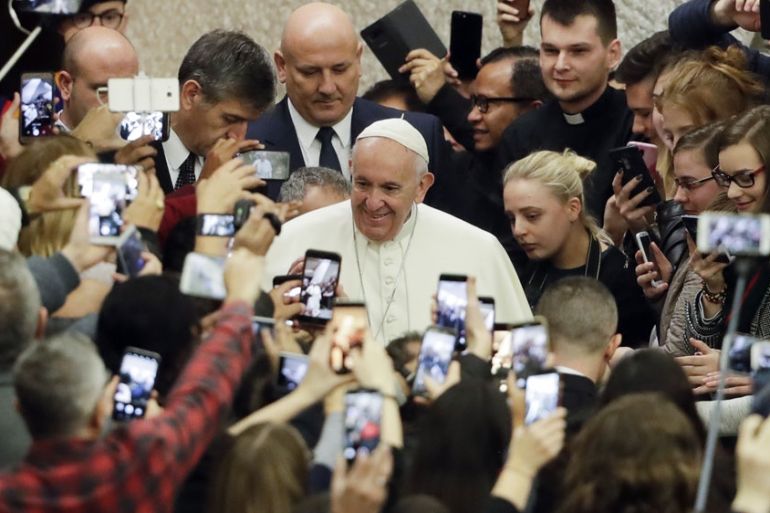 ![People hold banners reading 'Neither lefties nor fools, Osorno suffers, Bishop Barros, accessory after the fact,' during a protest, as Pope Francis visits Santiago, Chile [File: Carlos Vera/Reuters]](https://www.aljazeera.com/wp-content/uploads/2018/10/6aec47237818435581d5998450124592_18.jpeg?quality=80)