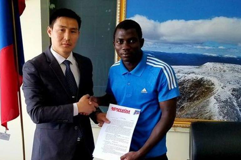 He arrived in Mongolia on May 10 last year in search of a football career, with the help of an “agent”, at second-tier outfit Khovd Western FC, intending to use the east Asian country as a stepping stone to Europe.