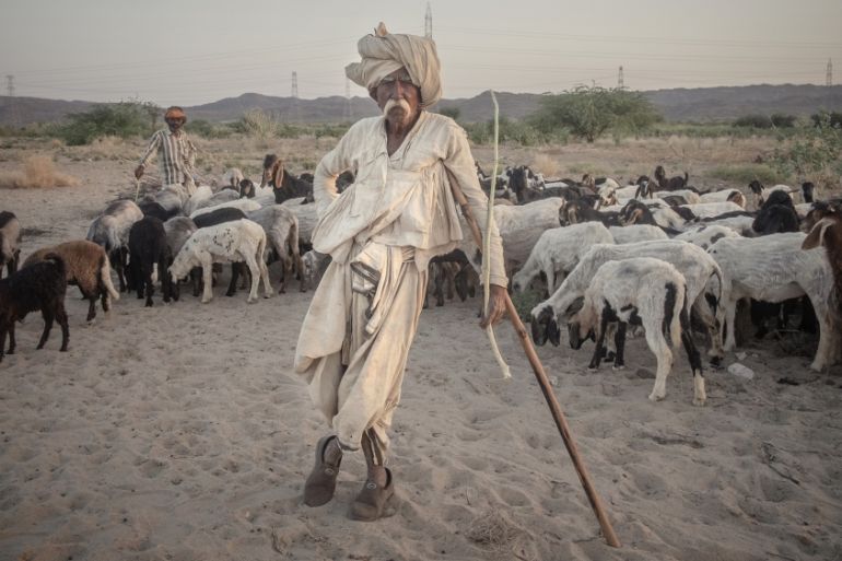 “There used to be a lot of grass for our animals to graze on,” said Hashu, a woman from the Rabari community, whose face is sculpted by deep wrinkles. “Now there is no fodder or water and we can only watch our animals die.”