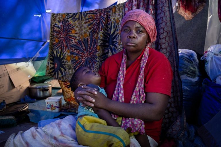 When we meet her, Beatrice cradles her youngest son against her chest under some blue tarpaulin which has been fashioned into a tent. Looking down at two-year-old Mulemera Kalonda, she says this is not the life she wants for her children. In the corner of the dwelling, Malumera’s older siblings huddle around a single page ripped from a colouring book.