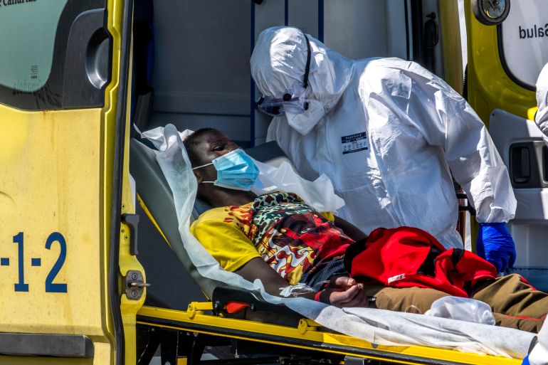Madrid, Spain – The body of an unknown man was among nearly 2,200 refugees and migrants who landed in the Canary Islands at the weekend, a new record in arrivals as Spain struggles to control a fresh migration crisis on Europe’s southernmost frontier.