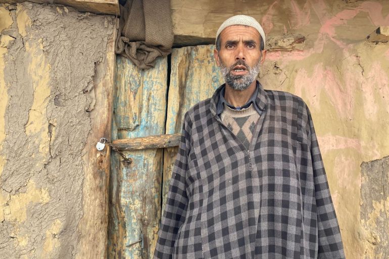 Budgam, Indian-administered Kashmir – An arduous three-mile trek over an unpaved mountainous track leads to Shareef-Ud-Din Bajad’s mud and wood hut. Dressed in a “pheran” – a traditional woollen cloak worn by Kashmiris for warmth – Bajad stood in front of his house staring at the apple tree stumps left behind by the authorities last week.