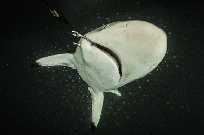 Swimming back to the boat, I thought of how these pictures captured a little-seen side of the global shark trade – the moment when one of these animals is caught at sea. They also pointed to a relatively unknown source in this industry, the lucrative shark fishing business taking place in the Gulf region. To feed a globalised appetite for shark fins and meat, blacktips are just one of many species being unsustainably fished in the Arabian Gulf.