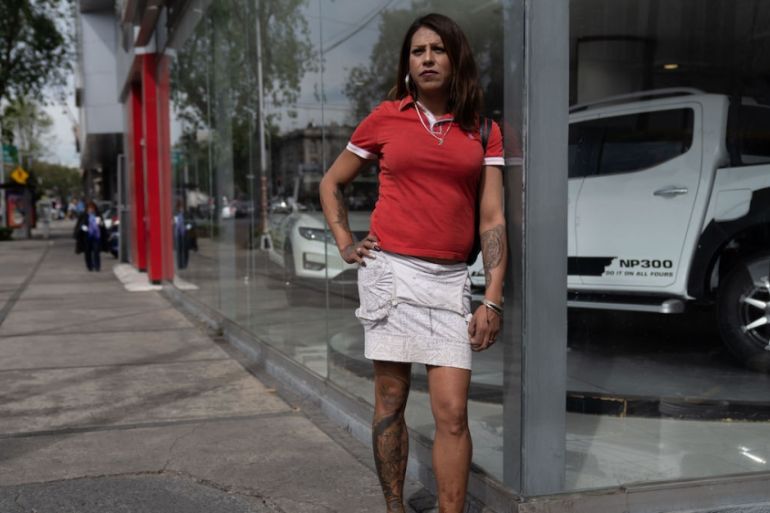 Puente de Alvarado, just blocks from the historic Monument to the Revolution, has long been one of the city’s primary thoroughfares for trans sex workers. The wide street cuts through the centre of the city, bordering the Tabacalera neighbourhood, which is filled with pay-by-the-hour hotels. Taco stands, cantinas and restaurants stand alongside abandoned 19th-century buildings on the avenue. It is bustling and busy during the day, but falls quiet at night, aside from the sex workers who stand in clusters on the corners.