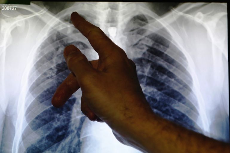A doctor points to an x-ray showing a pair of lungs [File: Reuters]