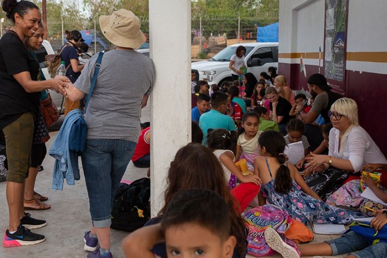 US immigration hearings have also been postponed, forcing many to wait even longer to learn the outcome of their asylum cases and making makeshift schools like Rangel-Samponaro‘s all the more important.