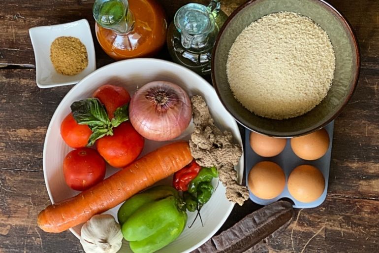 1½ cups gari (dried grated cassava) – can be substituted with cooked couscous or fonio