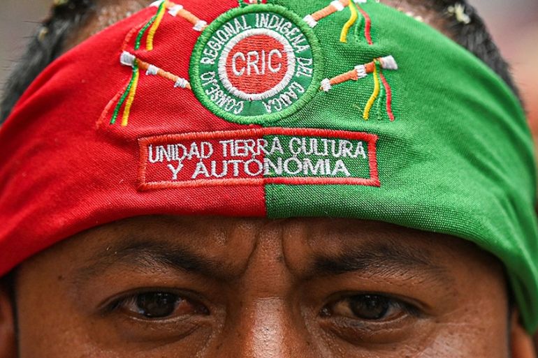 ![A man of the Nasa Indigenous group stands guard in Corinto, Cauca department, Colombia [Luis Robayo/AFP]](https://www.aljazeera.com/wp-content/uploads/2020/04/e9f83e4a49a64a5da5f3c6207c079a7e_6.jpeg?quality=80)