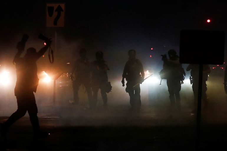 The militarisation of police gained heightened attention during protests in Ferguson, Missouri, in 2014 after a white police officer shot dead Michael Brown, an unarmed 18-year-old Black man.