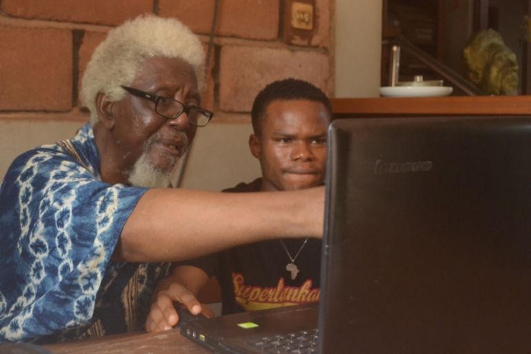 Today, Nwoko’s attention is focused on a recent government commission to design the new National Gallery, 415km (258 miles) away in Abuja. His laptop sits next to stacks of notes for his autobiography and a manuscript about his architectural philosophy. His wife beckons repeatedly until he finally allows his work to be interrupted for lunch.