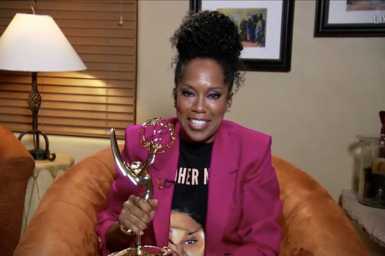 Award show to recognise television’s best was scaled down because of COVID-19, with some stars joining from their sofas.