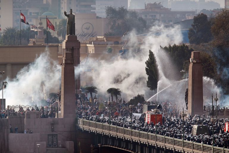 ![Riot police force protestors back across the Kasr Al Nile Bridge as they attempt to get into Tahrir Square on January 28, 2011 in downtown Cairo, Egypt. Thousands of police are on the streets of the capital and hundreds of arrests have been made in an attempt to quell anti-government demonstrations [Peter Macdiarmid/Getty Images]](https://www.aljazeera.com/wp-content/uploads/2021/01/108473126.jpg?resize=770%2C513&quality=80)