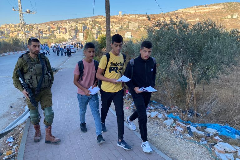 Amer Safadi, a municipal employee in Urif, said he also escorts his children to and from school to avoid them being injured by settlers from the Yitzhar settlement located on the next hill near the village.