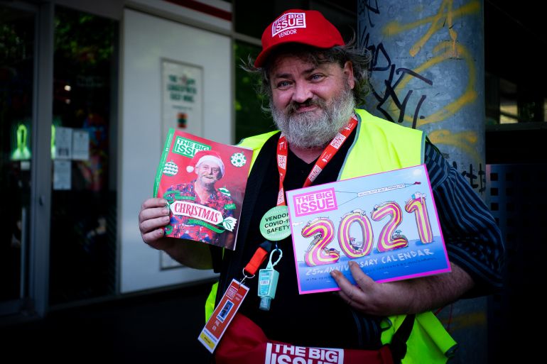 He can still be found on the streets selling the Big Issue, but he no longer sleeps on them.