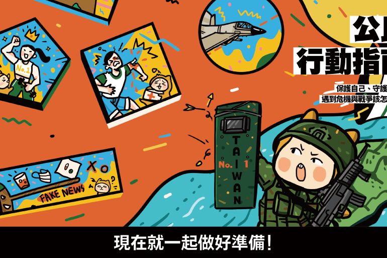 The handbook also offers advice on how to behave during a war and how civilians can help by providing Taiwanese forces with food, accommodation, and intelligence, and to avoid being drawn into any provocations or propaganda exercises carried out by an occupying force.