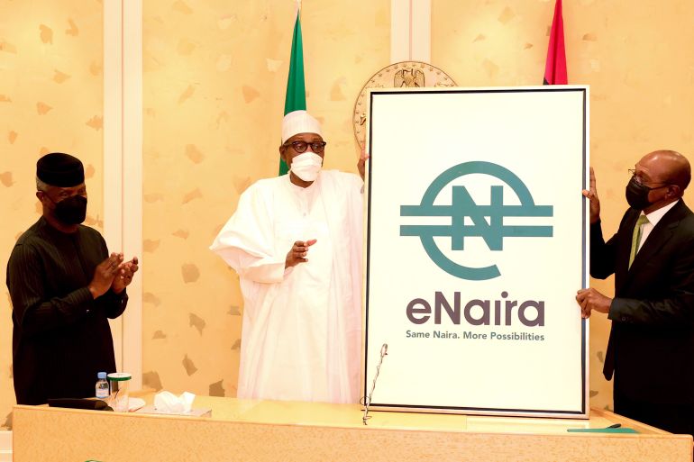 In a televised speech at the time, President Muhammadu Buhari said adoption of the eNaira and blockchain technology “can increase Nigeria’s GDP by $29bn over the next 10 years”.