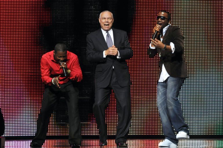 ![Former US diplomat Colin Powell dancing with singer Olu Maintain (red shirt) and an unnamed dancer at Africa Rising Festival, Royal Albert Hall, London, Britain - 14 Oct 2008 [Brian Rasic/Getty Images]](https://www.aljazeera.com/wp-content/uploads/2023/07/GettyImages-566827369-1689326029.jpg?resize=770%2C513&quality=80)