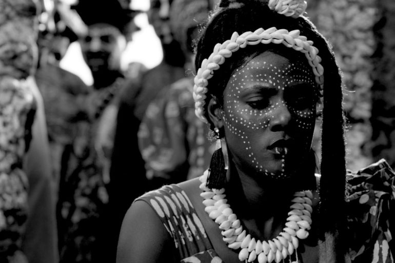 Mami Wata, Obasi’s third feature-length film, is a black-and-white fantasy thriller inspired by the rich folklore of coastal West Africa. Shot in 2021 and released in January, it has a running time of 107 minutes. The title is a Nigerian pidgin reference to the mermaid or all-powerful water goddess believed to provide healing, wealth and protection to her worshippers. The film is also in Nigerian pidgin.