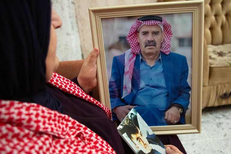 In the courtyard of their home, Abu Helaiel’s wife of 43 years, Basma, is sitting alone in one of the two chairs she and her husband used to sit in. Beside her are the flowers and trees that Abu Helaiel, who was 66 when he was killed, lovingly tended to.