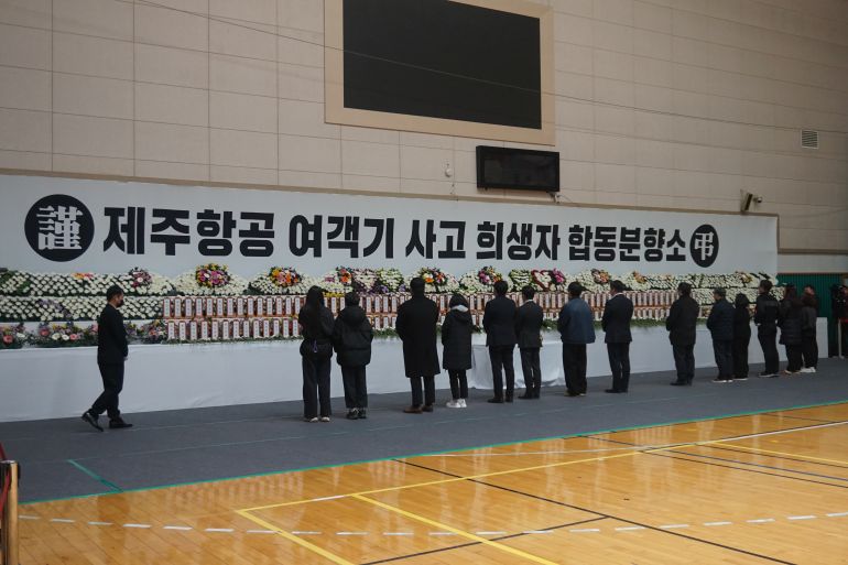 A nationwide period of mourning has been announced for seven days with memorial sites set up in cities across the country. Less than 10km (6.2 miles) away from the Muan airport, a memorial altar was set up at the city’s sport complex to honour the victims.