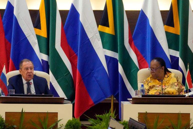 ![Russia's Foreign Minister Sergey Lavrov, left, speaks as his South Africa's counterpart in Naledi Pandor listens, during their opining remarks of their meeting in Pretoria, South Africa, Monday, Jan. 23, 2023 [Themba Hadebe/AP Photo]](https://www.aljazeera.com/wp-content/uploads/2023/01/AP23023345590654.jpg?resize=770%2C513&quality=80)