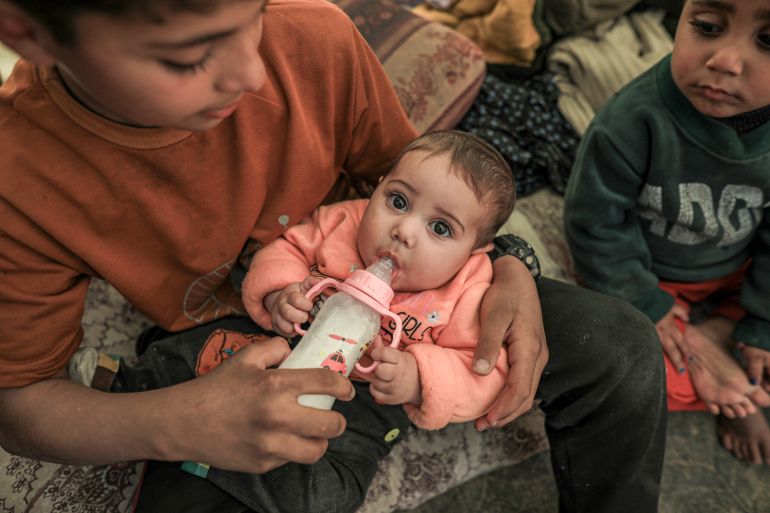 Rafah, Gaza – In a little tent in Rafah, 15-year-old Nagham al-Yaziji and her brother Mohammad, 14, are holding down the fort as best they can, keeping house and caring for their seven younger siblings, the youngest of whom is six-month-old sister Toleen.