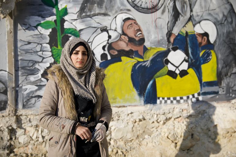 Over the past few days, al-Hamed and her fellow painters in the Brush of Hope group visited several of the worst-affected cities and towns in the countryside of Idlib province.